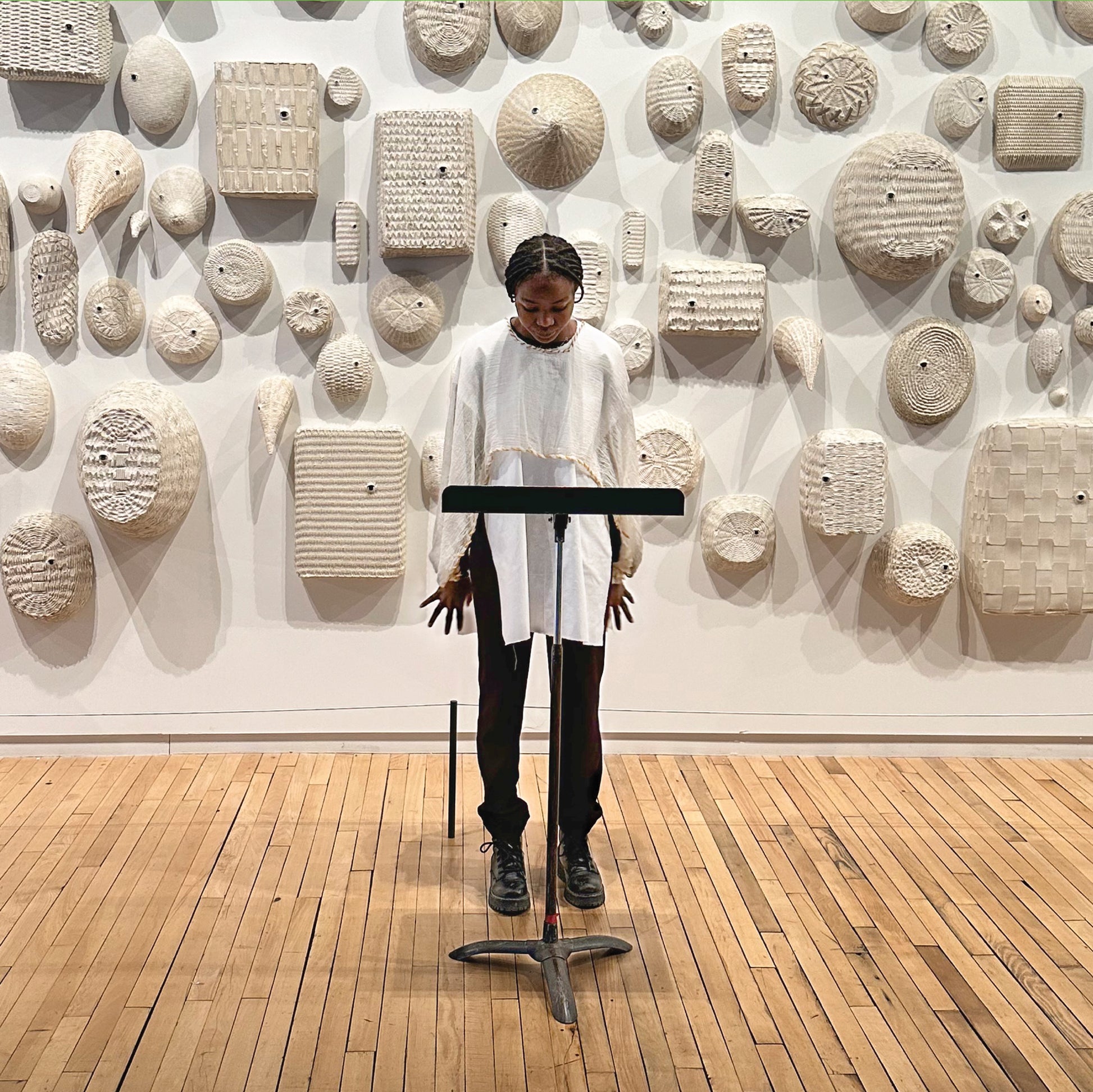 Edition of 20. The Williams College Chamber Choir, under the direction of Anna Lent performed composer- David Lang’s “when i am alone”, alongside Amy Podmore’s sculptural wall installation, Audience at MASS MoCA on February 22, 2025.