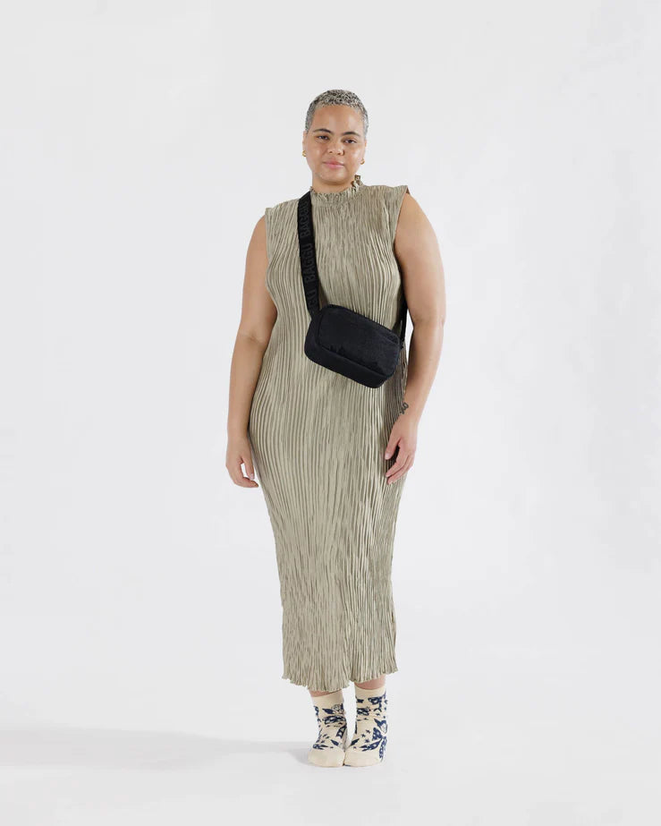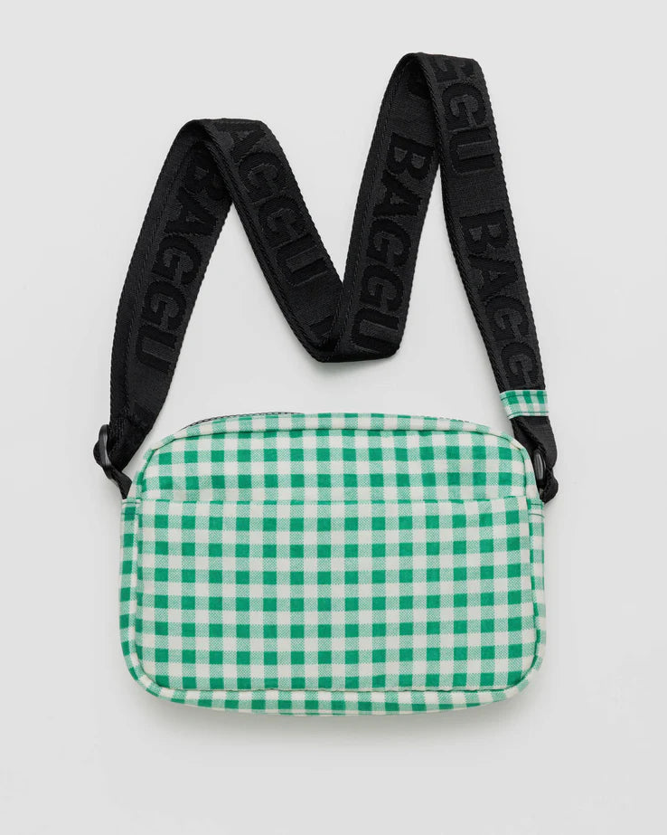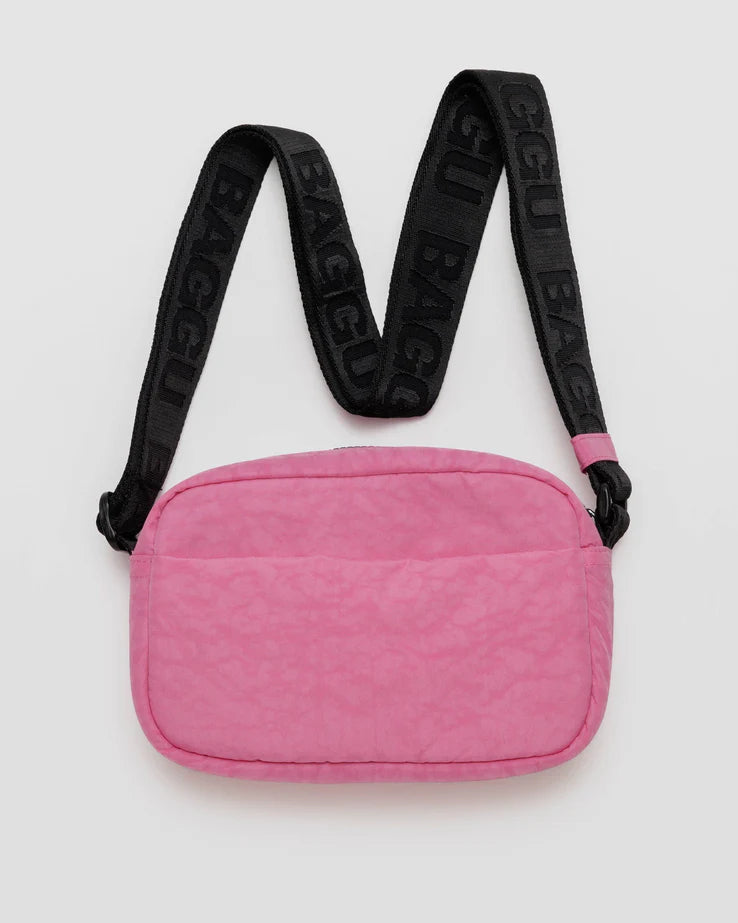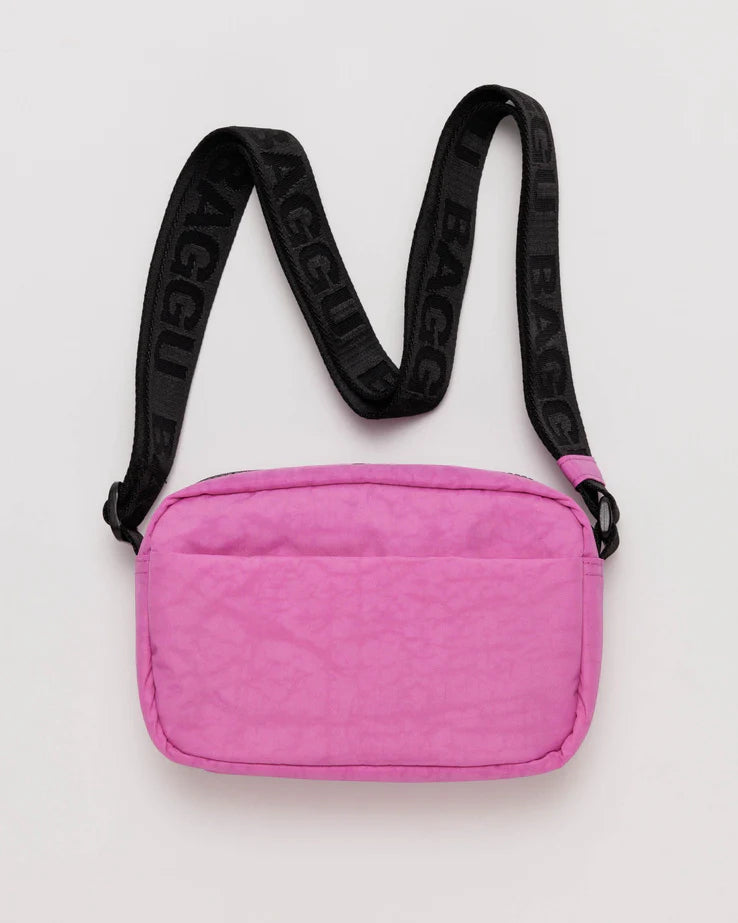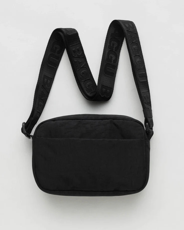 A sporty, slightly structured heavyweight nylon bag with an adjustable strap.