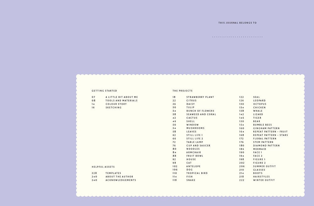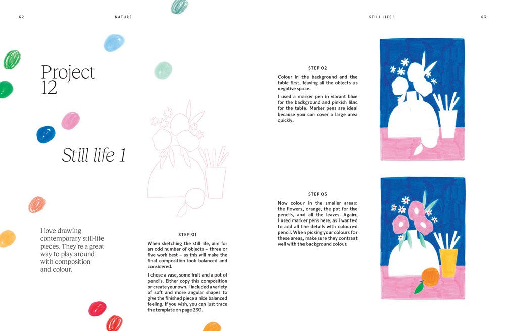 With sections including Patterns, Nature, Food and Characters, you can try your hand at drawing flowers, fruit, faces and more. Plus at the end of each chapter, Jess will show you how to put all of the objects together to create a beautiful still life scene.