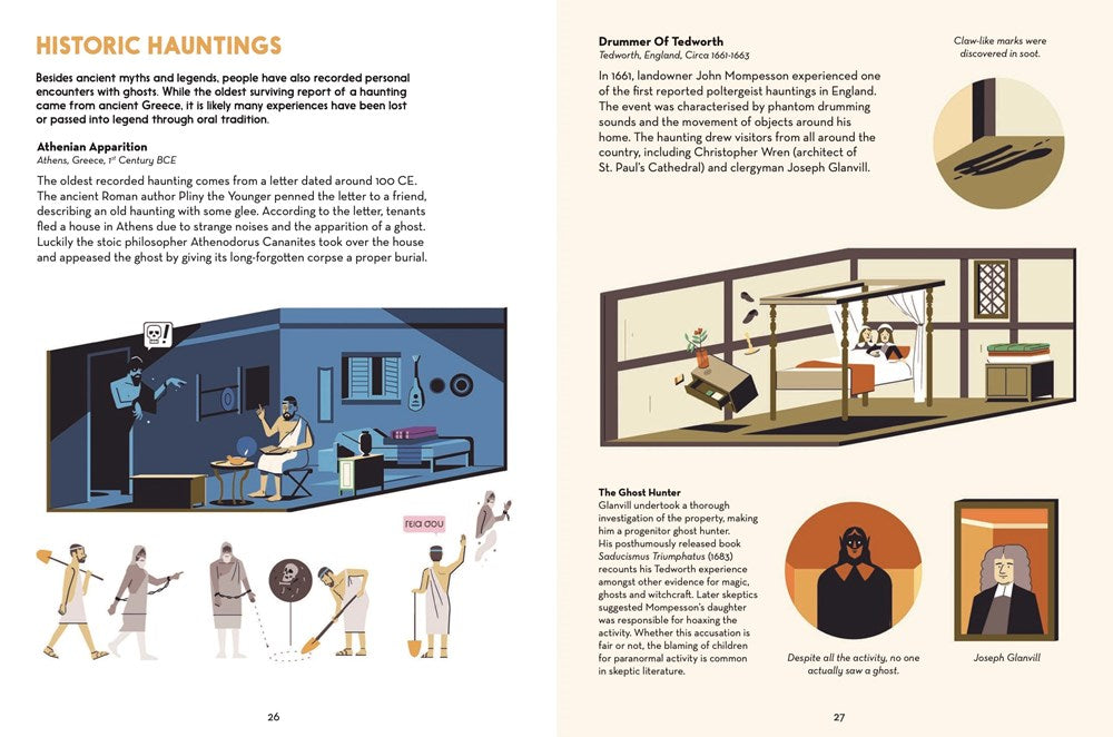Get to the heart of the unexplainable in Adam’s third addition to the “llustrated History” series filled with private seances and ectoplasm to spiritual mediums and spirit photography galore. Fans of conspiracy and strange phenomena will transport themselves across the centuries through diagrammatic illustrations paired with well-researched facts about exorcism, mediums, ghost photos, talking boards, and connections to after life.