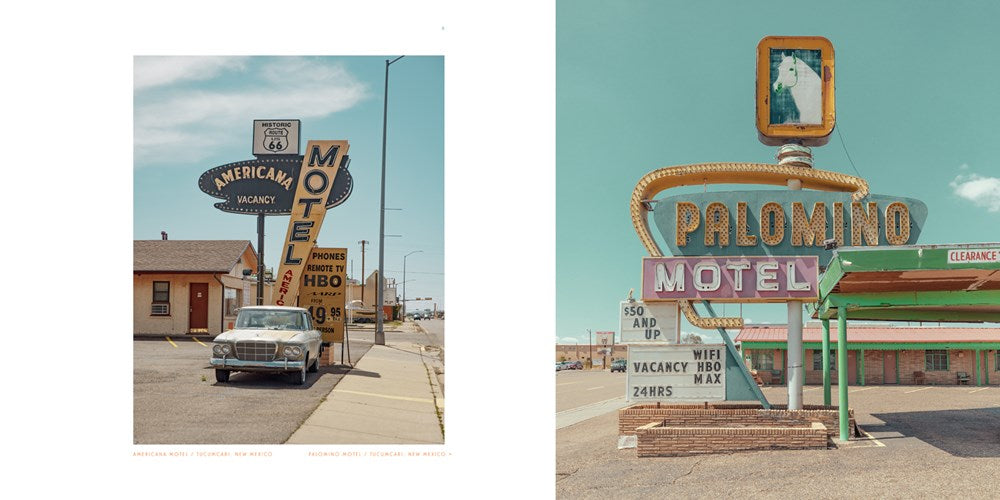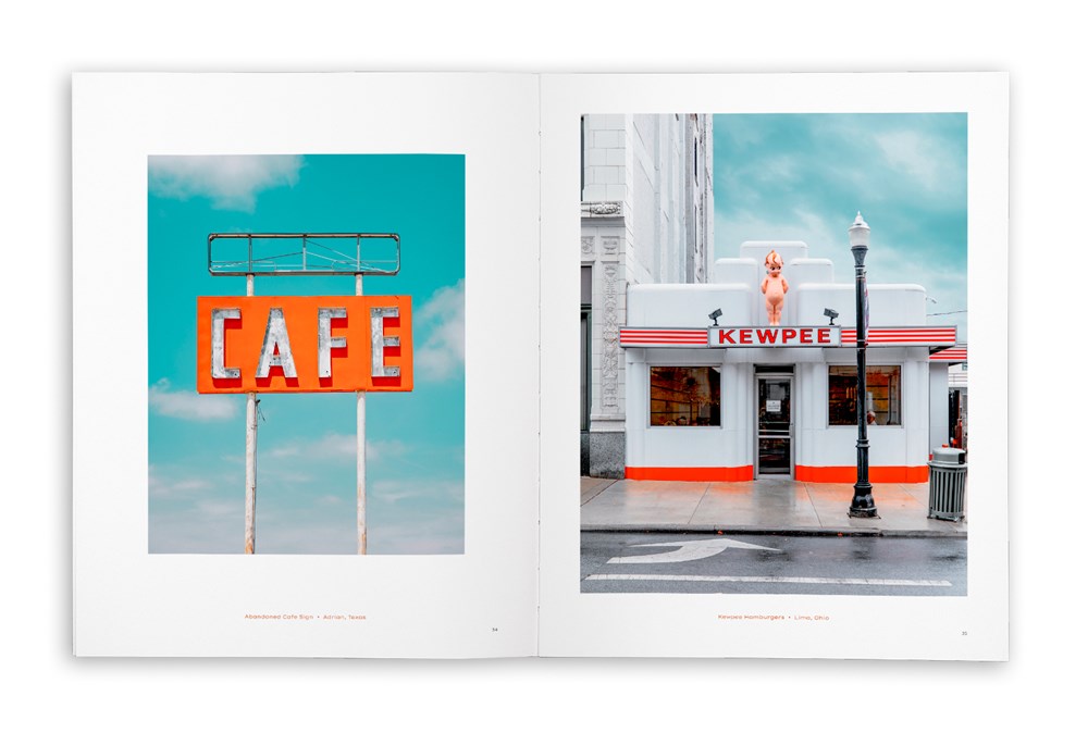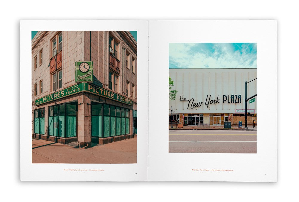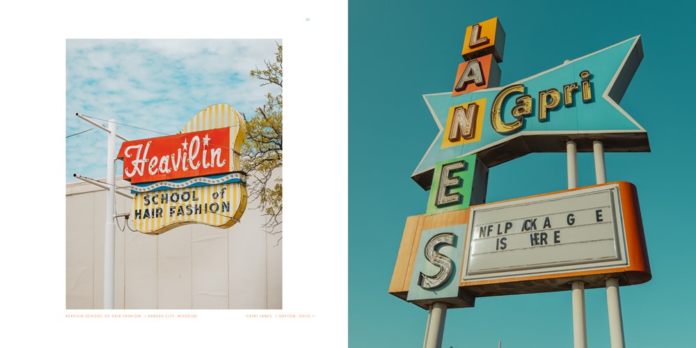 Organized in sections, including Signs, Theaters, Restaurants, Motels, Roadside, and Facades, and featuring an introduction by the photographer, Faded Glamour features over 150 color images from 15 states, including Arizona, California, Indiana, Illinois, Iowa, Kentucky, Michigan, Missouri, New Jersey, New Mexico, Ohio, Oklahoma, Pennsylvania, Texas, and Wisconsin. Evoking a sense of nostalgia and solitude, Geier’s work highlights the modernist architecture, minimalist design, and muted color palette of the mid-century.