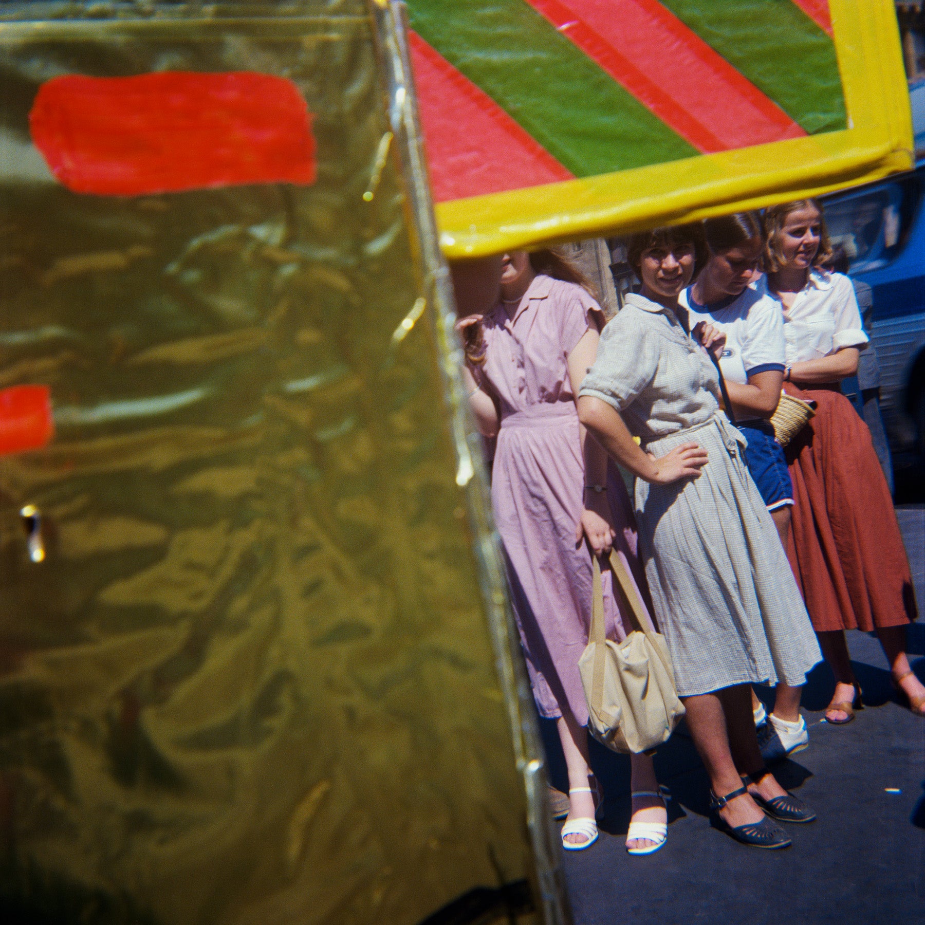 Brownie is a collection of photographs created by photographer David Katzenstein over ten years, from 1979-1989. With this series, Katzenstein pays homage to the original line of Brownie cameras that began in 1900. For the series, he used the successor to the famous Kodak Brownie, the Kodak Dualflex, which was first introduced in 1947. The result is a colorful, personal, and sensitive view of the world.