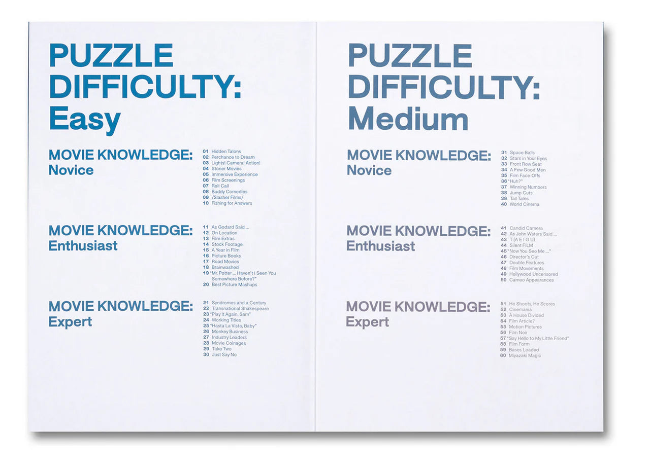 Edited by film writer and longtime puzzle constructor Anna Shechtman, 99 Movie Crosswords progresses from easy to hard across both puzzle difficulty and movie IQ, with themes ranging from stoner movies to Soviet cinema.