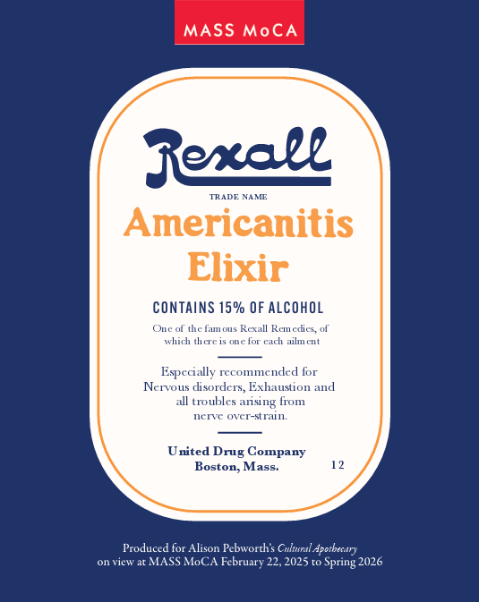 For more than a decade, Alison Pebworth has been inspired by a 19th-century neurological disorder called Americanitis. With symptoms both vague and vast—abnormal fatigue to premature baldness—a diagnosis of Americanitis pathologized the anxiety and ennui that plagued many Americans in the wake of industrialization and urbanization. These feelings persist today—albeit with new manifestations— alongside emerging contemporary concerns including burnout,1 climate anxiety or eco-anxiety,2 and loneliness.3 Pebworth’s Cultural Apothecary at MASS MoCA asks us to consider the root causes that contribute to our feelings of unease today, and to work together towards tools for healing.