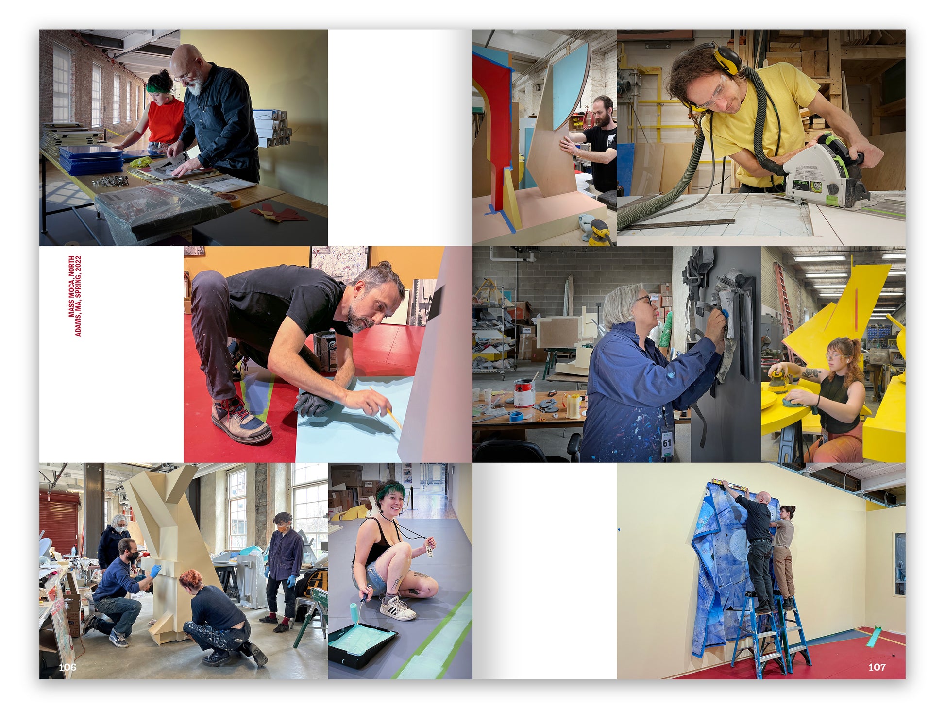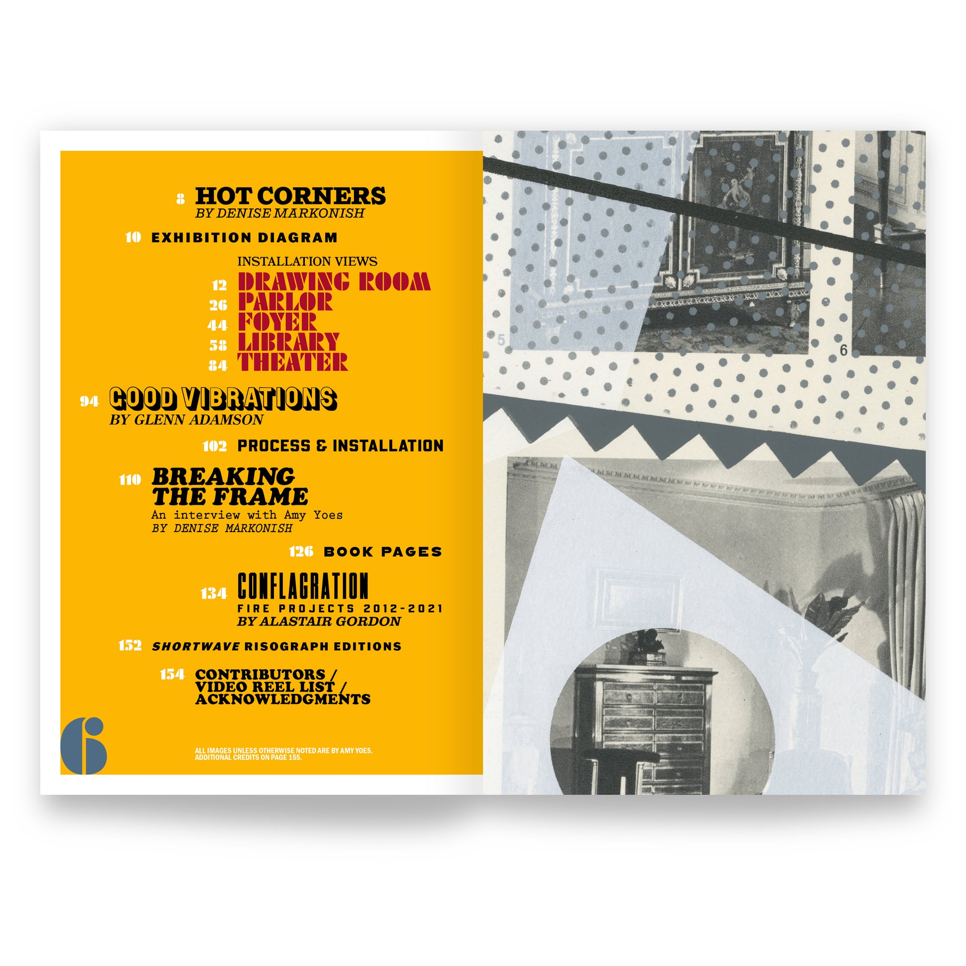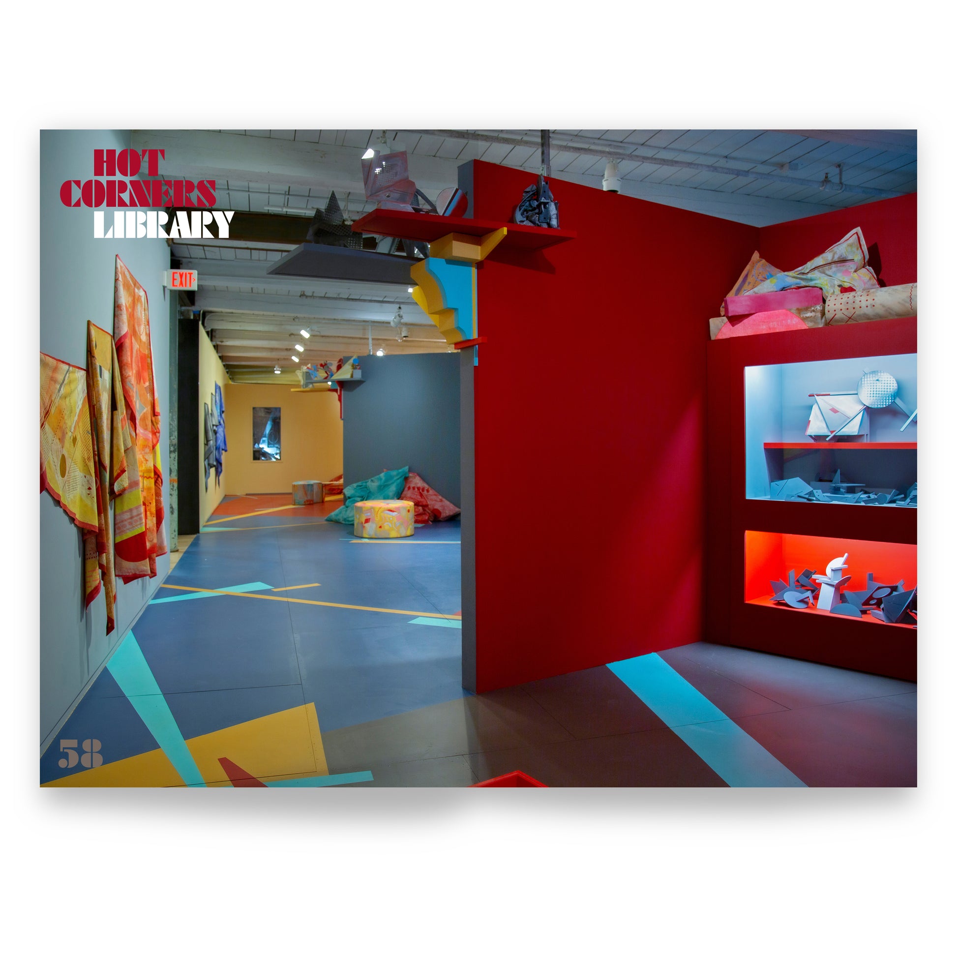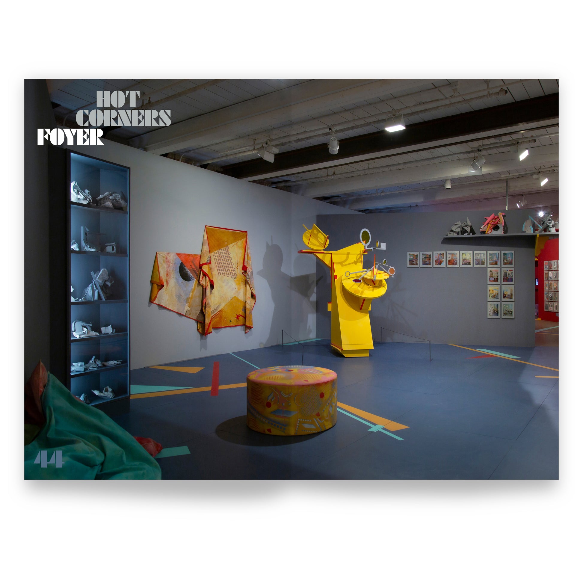 This vibrant artist book and trim monograph preserves the playfulness of Yoes’ beloved Building 6 installation, Hot Corners, wherein the artist transforms a 142-foot space into a multi-room, immersive complex with thematic forms and functions. Each of the installation’s five rooms — the Foyer, the Parlor, the Library, the Theatre, and the Drawing Room — are designed with custom-built mobile furniture acting as shifting set pieces for a variety of functions including artmaking, socializing, reflection, and performance. The catalogue is a gorgeous document of the MASS MoCA project and a deep dive into Yoes’ visual vocabulary.
