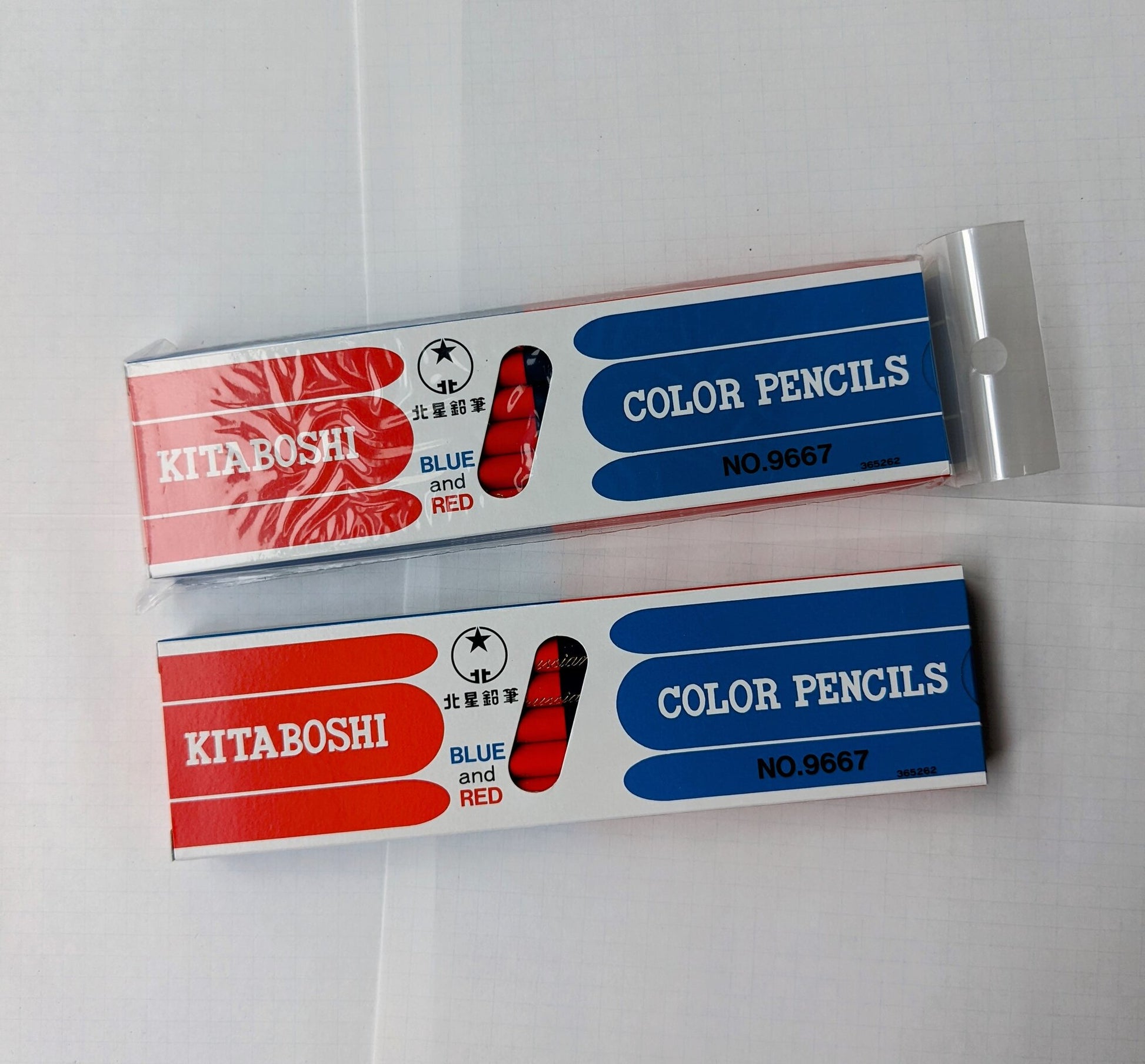 Box of 12 Kita-Boshi pencils - vermillion/Prussian blue