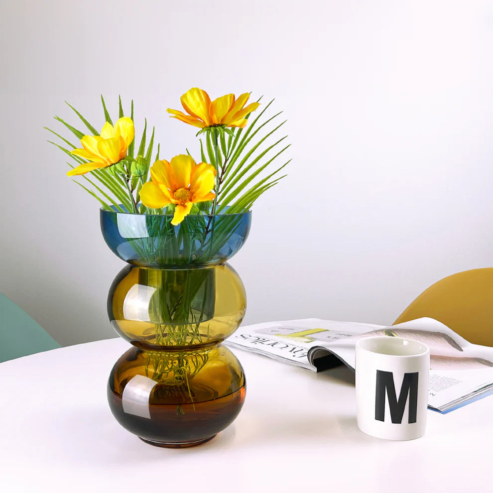Each segment of the vase is carefully mouth-blown, showcasing the unparalleled skill of the glass artisan. The bubble design is not just visually pleasing but also tactile, inviting you to feel the smooth contours and appreciate the heft of quality glasswork.