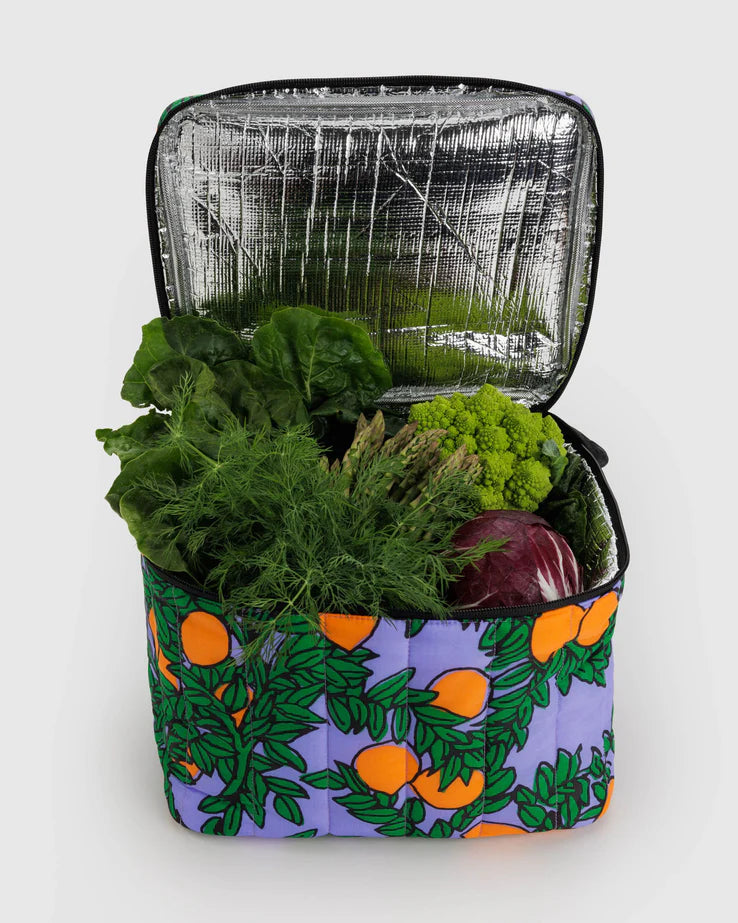 Heading out with drinks and snacks to share? Pack those frosty goods in a puffy cooler. It's insulated to keep your drinks, snacks and other treats cool and cushioned. Everything will be chill :-)