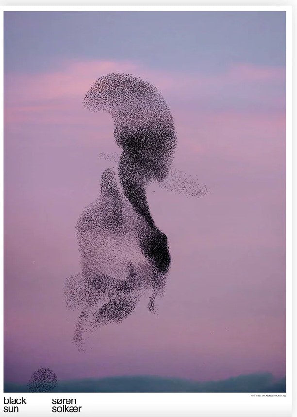 This beautiful print from Danish photographer Søren Solkær's Black Sun, captures the large murmurations of starlings that take place by the Wadden Sea near his native home of southern Denmark. Following their routes led him on years-long journeys to Italy, the Netherlands, England and Catalonia. Inspired by classical landscape painting, calligraphy and Japanese woodcuts, Solkær presents a series of graphic images featuring landscape and great flocks of starlings, performing an unrivaled display of collaboration and performance skills. These images remind us of ink drawings or calligraphic brushstrokes up in the sky. These images received global acclaim with features in National Geographic, the Observer and the New York Times.