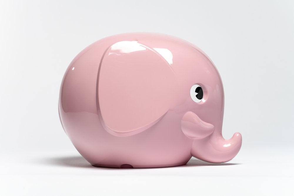 Made in Pertunmaa Kuortti, Finland, these special money boxes are classic 1970's Finnish design. Each elephant comes with its own key. Made from food-approved, BPA-free material. Recyclable.