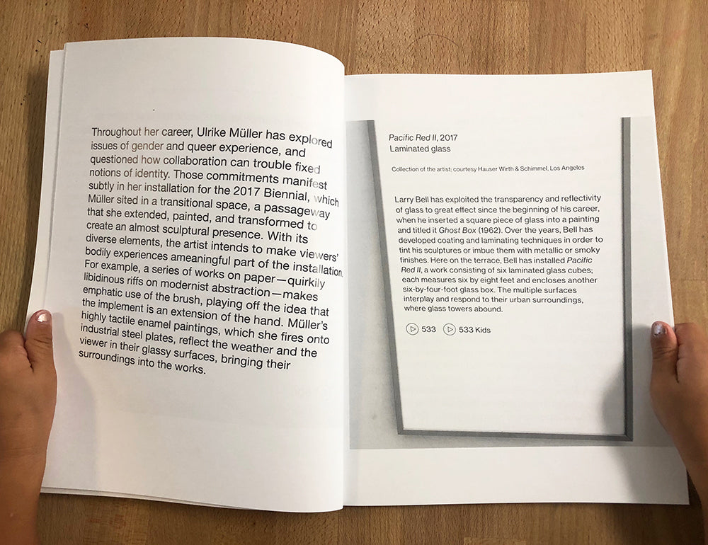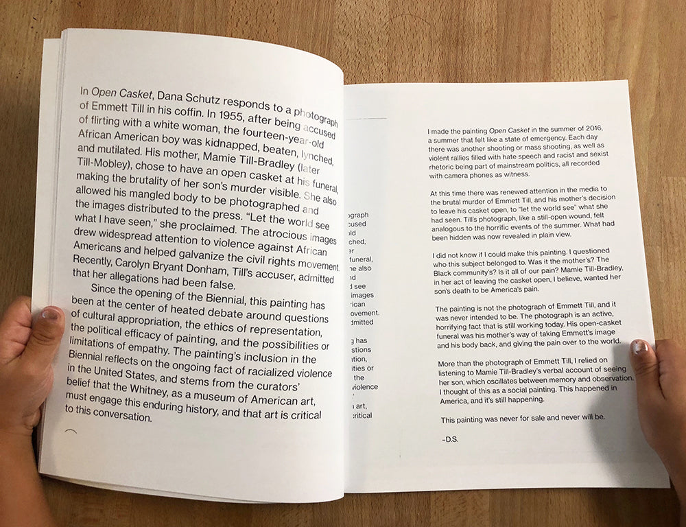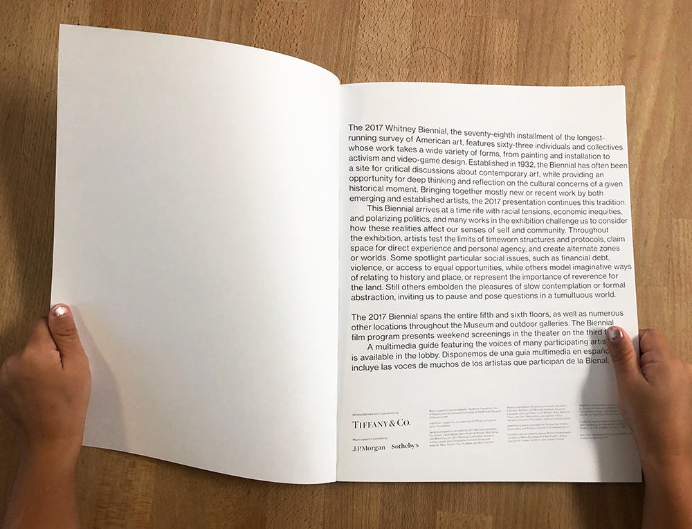 photos of the wall labels of the 2017 Biennial at the Whitney Museum of