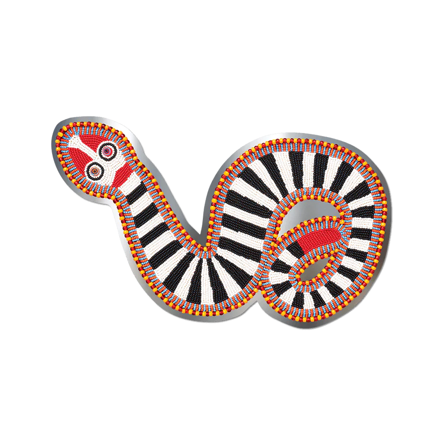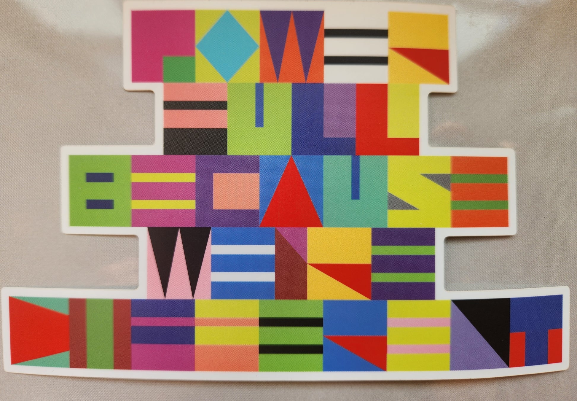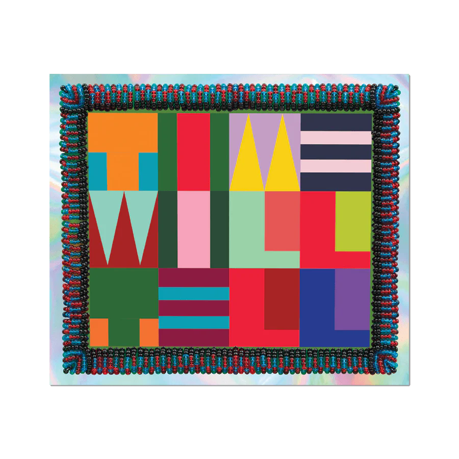 Artwork by Jeffrey Gibson, these die-cut stickers are digitally printed on metallic poly & made with in the USA. Great for phones and laptops – not dishwasher safe! dimensions below.