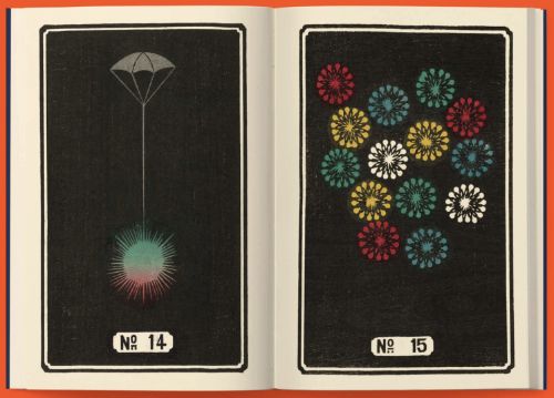 The effect of fireworks at the moment of explosion seems impossible to reproduce on paper, due to its ephemeral and iridescent nature. Yet in late 19th century Japan, Jinta Hirayama undertook this challenge by publishing an extraordinary catalogue. While the purpose of the booklet was once to show Hirayama Fireworks Company's customers the variety and originality of its pyrotechnic productions, complete with instructions for use, today the illustrated fireworks catalogue stands before our eyes as a valuable work of graphic art.