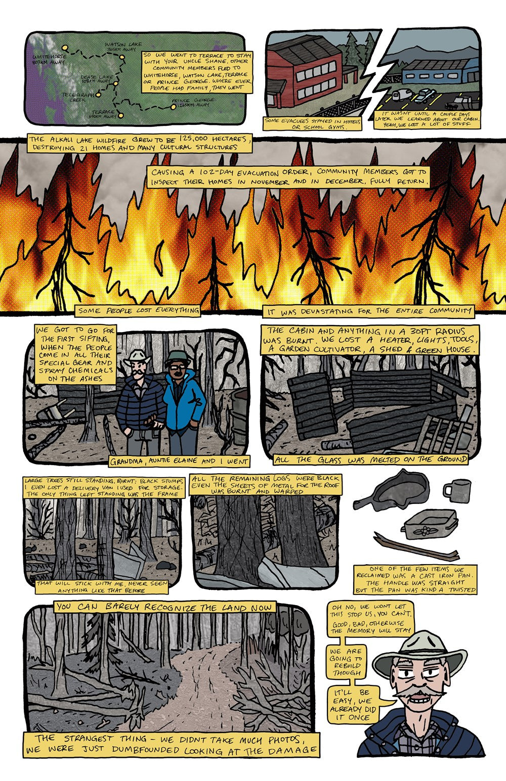 Gathering Pauls’s comics from magazines, comic festivals and zine making workshops, these comics are his most personal work yet. You’ll learn stories about the author’s family, racism and identity, Yukon history, winter activities, Southern Tutchone language lessons and cultural practices. Have you ever wanted to learn how to Knuckle Hop? or to acknowledge and respect the Indigenous land you’re on? Or how to be an ally to Indigenous people? Well, gather around and hear this Kwändǖr!