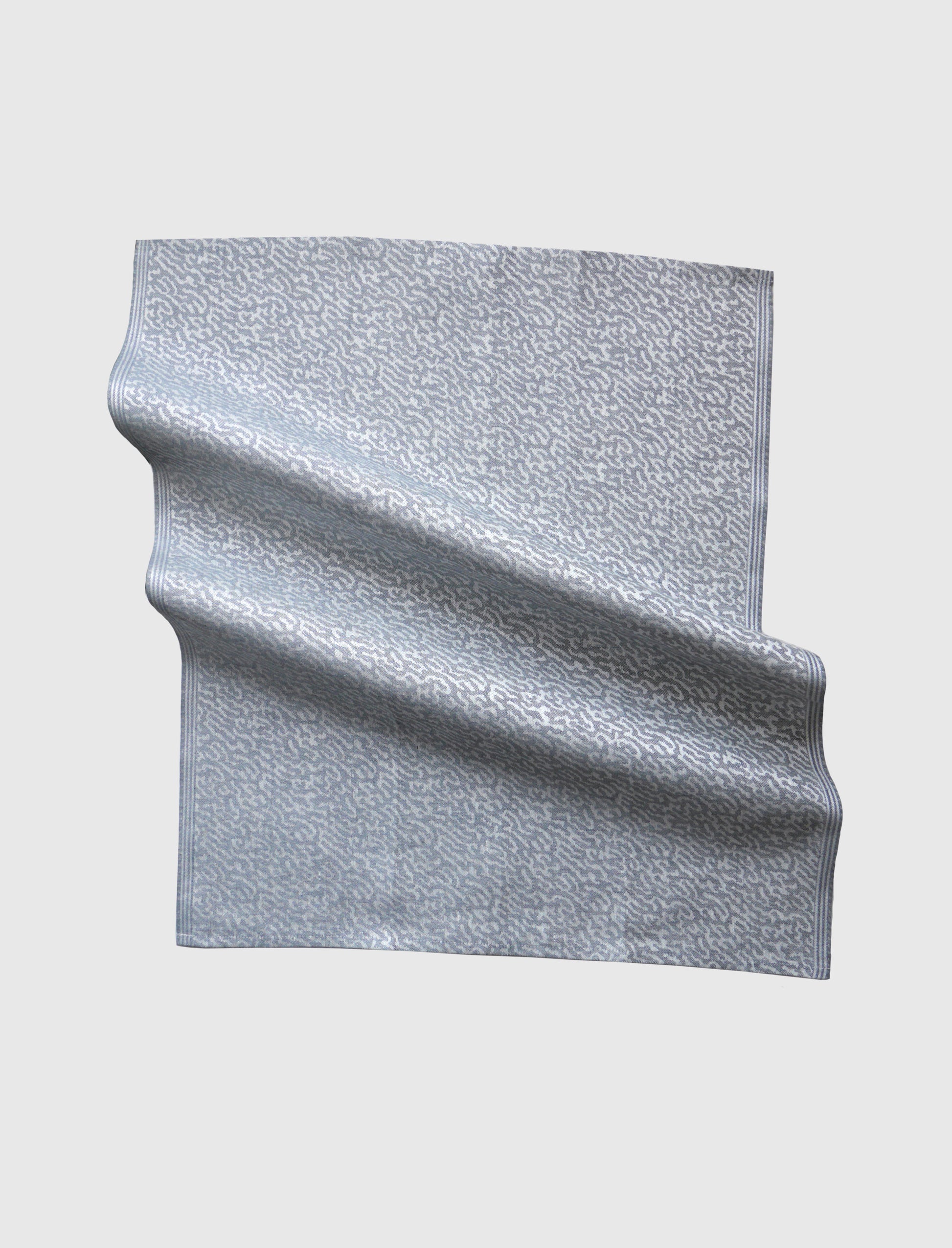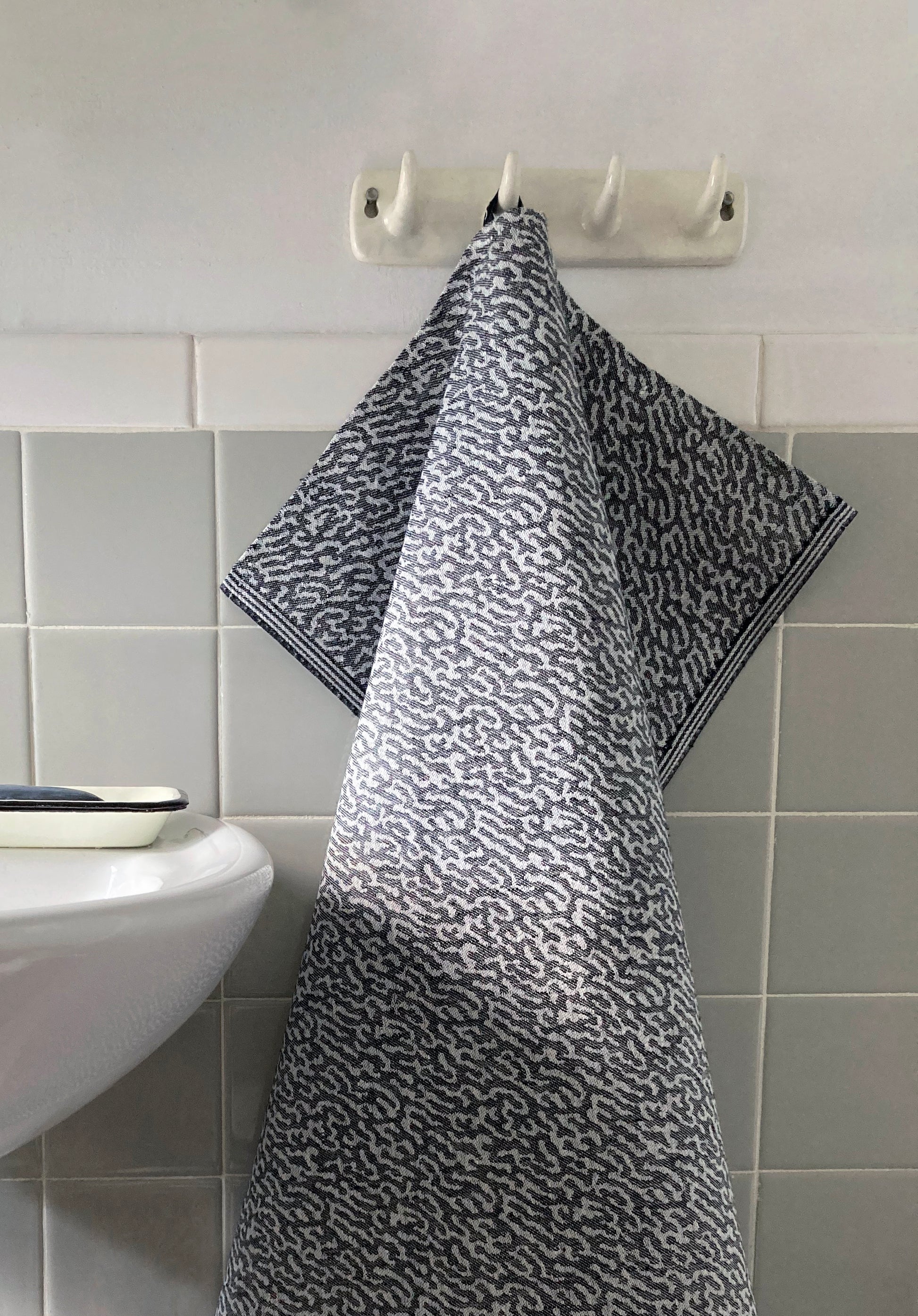Jacquard woven from GOTS* certified linen, the towels are strong, durable and have a natural luster when newly pressed. The material is highly absorbent, quick drying, and naturally antibacterial. They soften with time and last for ages when properly cared for.