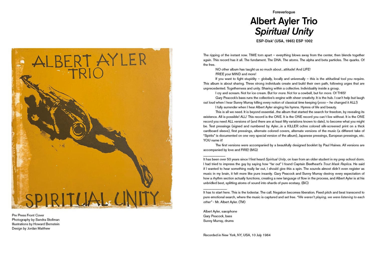 Featuring images of albums, singles, and cassettes direct from the authors’ personal archives in all their loving wear and tear, along with Philippe Gras’ exquisite photos of Free Music legends, this is a book for all adventurous lovers of creative sound, whether they be record collectors, avant-garde Jazz enthusiasts, students of radical culture, or simply curiosity-seekers in wonder to this music’s illustrious history and lineage.