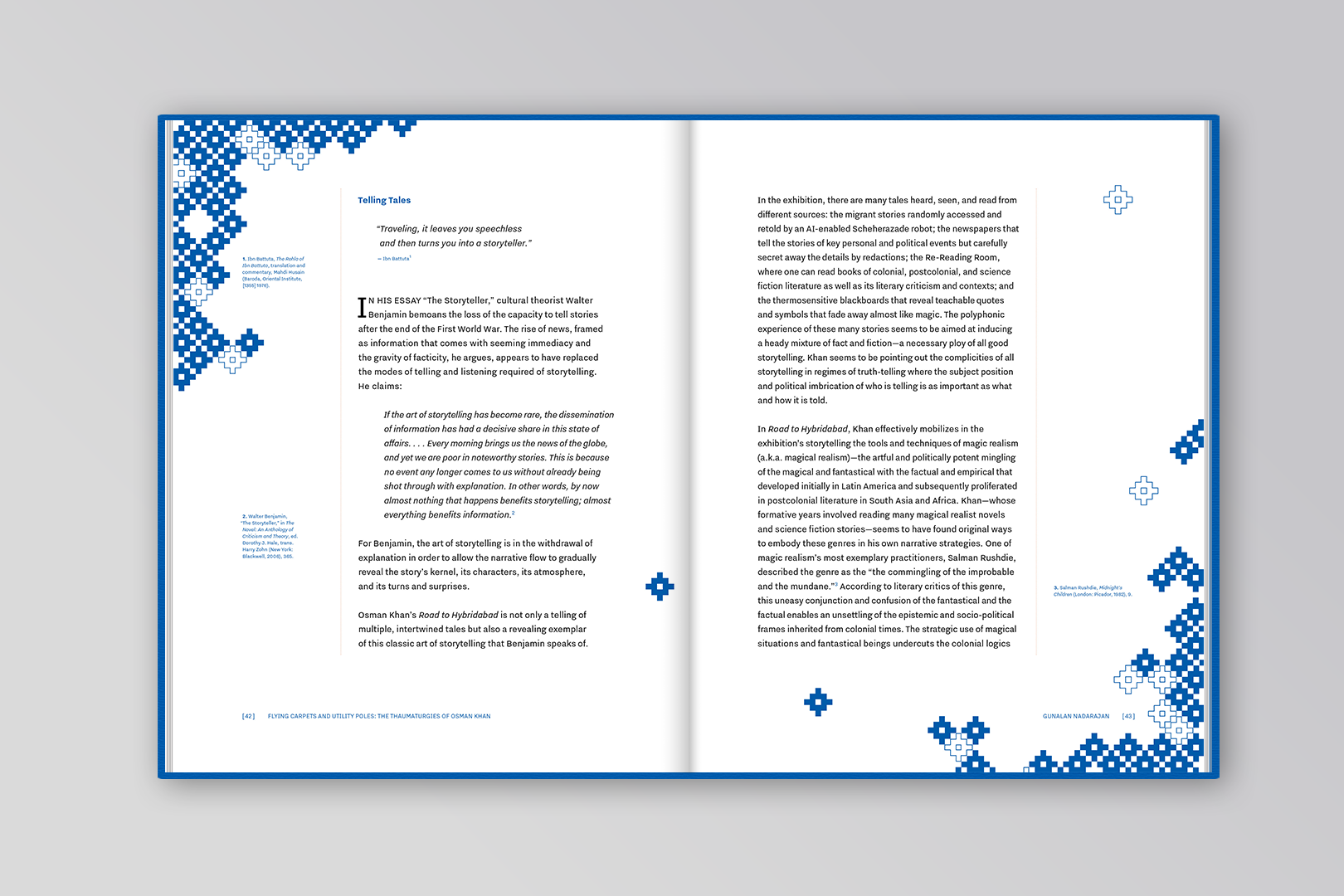 Osman Khan’s work plays with and subverts the materiality behind themes of identity, migration, and decolonization of knowledge and technologies through participatory and performative installations and site-specific interventions. This book–Khan’s first monograph–chronicles his major exhibition Road to Hybridabad, at MASS MoCA, within his larger practice, gathering writings by thinkers who share an interest in decolonization, hybridity, and the role of storytelling in shaping identity.