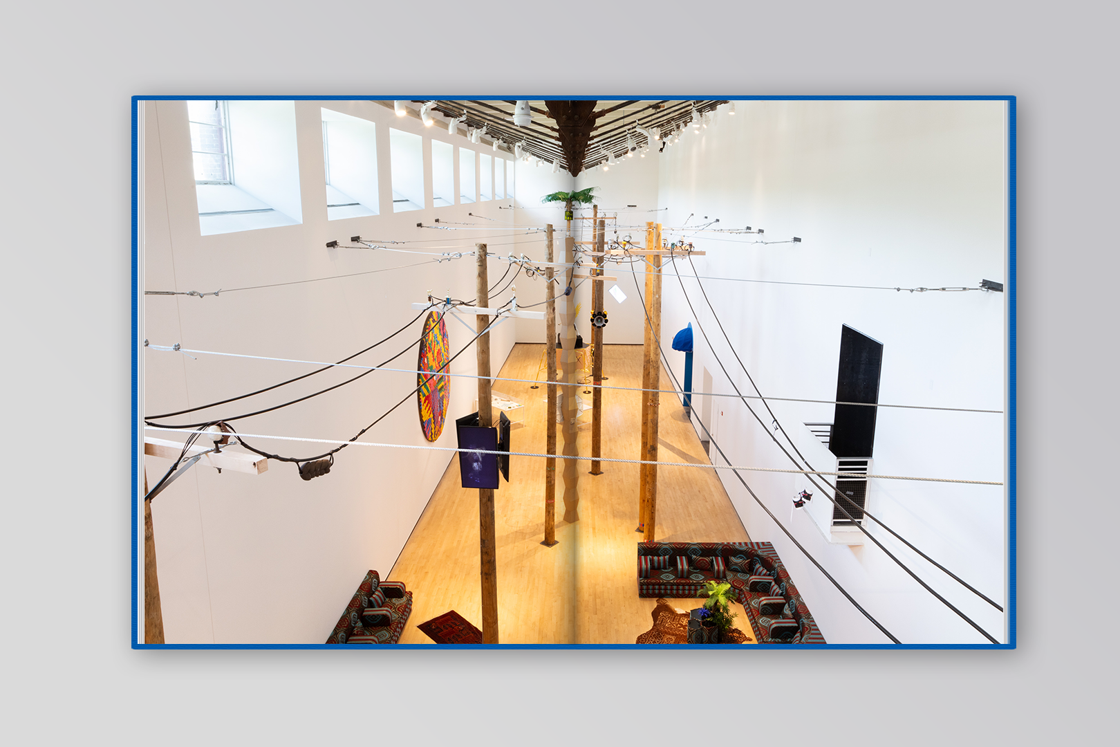 In Road to Hybridabad, Osman Khan re-reads the magical and fantastical figures found in folktales and lore from South Asia, the Middle East, and other Muslim and immigrant traditions. Khan interprets these figures through contemporary technologies and concerns: this new body of work includes an animatronic djinn, drone-operated flying carpets, a wall-destroying sound system/cannon, and a storytelling Scheherezade AI. Khan’s wryly funny work invites us on a journey across borders, through time, and between legend and history, encouraging us to reconsider — and perhaps rewrite — the narratives around identity, difference, and power reflected and recounted in the tales we tell ourselves.