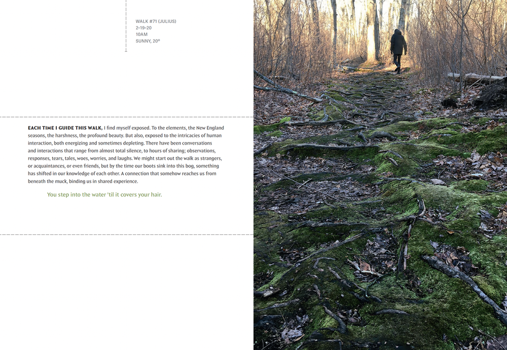 The Book of Walks is an edited logbook of guided walks at Lost Pond. It simulates the path walked, and acts as a spacious grief meditation for the reader.