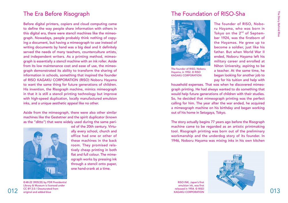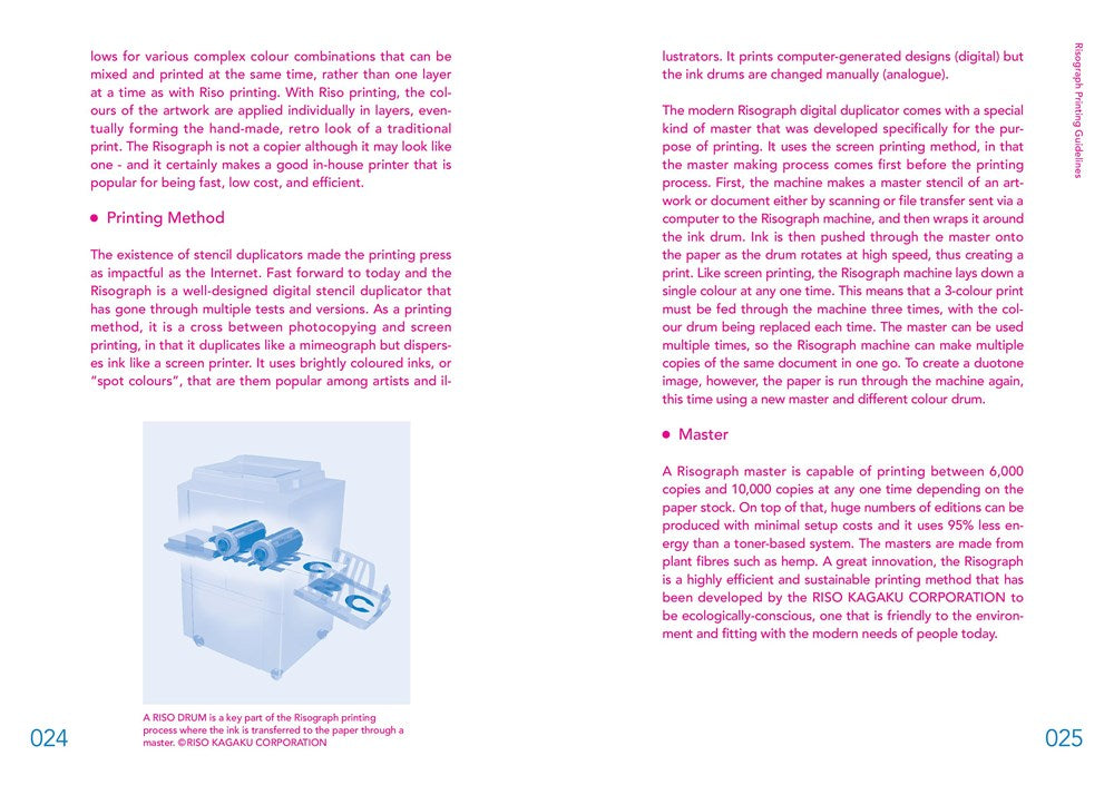 In recent years risography has captured the attention of printers and artists, especially in independent and self-publishing circles, given the technical and visual qualities it offers. Varied and vivid spot colors, the warmth of the finishes, and occasional imperfections in uniformity and register are just some of these attractive features. The book begins by giving readers a brief history of the Risograph while outlining the basic principles of the printing process, including the equipment, tools and materials needed to get started. Designed mainly for high-volume photocopying and printing, Risographs are far less expensive than conventional photocopy machines and laser or ink printers. Rich in illustrations, pictures, detailed instructions and infographics, this practical guide to Risograph printing will teach readers how to set up a Risograph, how to prepare files to print, how to make overprints and knockouts, how to choose paper, how to handle freshly printed works, what ink to use and about any additional equipment they will need to become a Riso master. An ideal primer for novice users of a Riso printer, readers will also learn how to apply artistic printing techniques that will allow them to print with brighter, more expressive, saturated colors that, unlike photocopy ink, do not fade over time. The book also includes profiles of notable printers, with one featured work of Riso art and the printing technique used. In addition to examples of printed products, readers will find works from contributing print shops and information about design studios and artists from around the world. The book will broaden the reader’s printing horizons and illustrate the extensive variety of possibilities offered by this relatively straightforward technique, inspiring them through the prints of others to create their own riso art.
