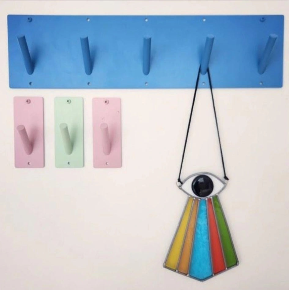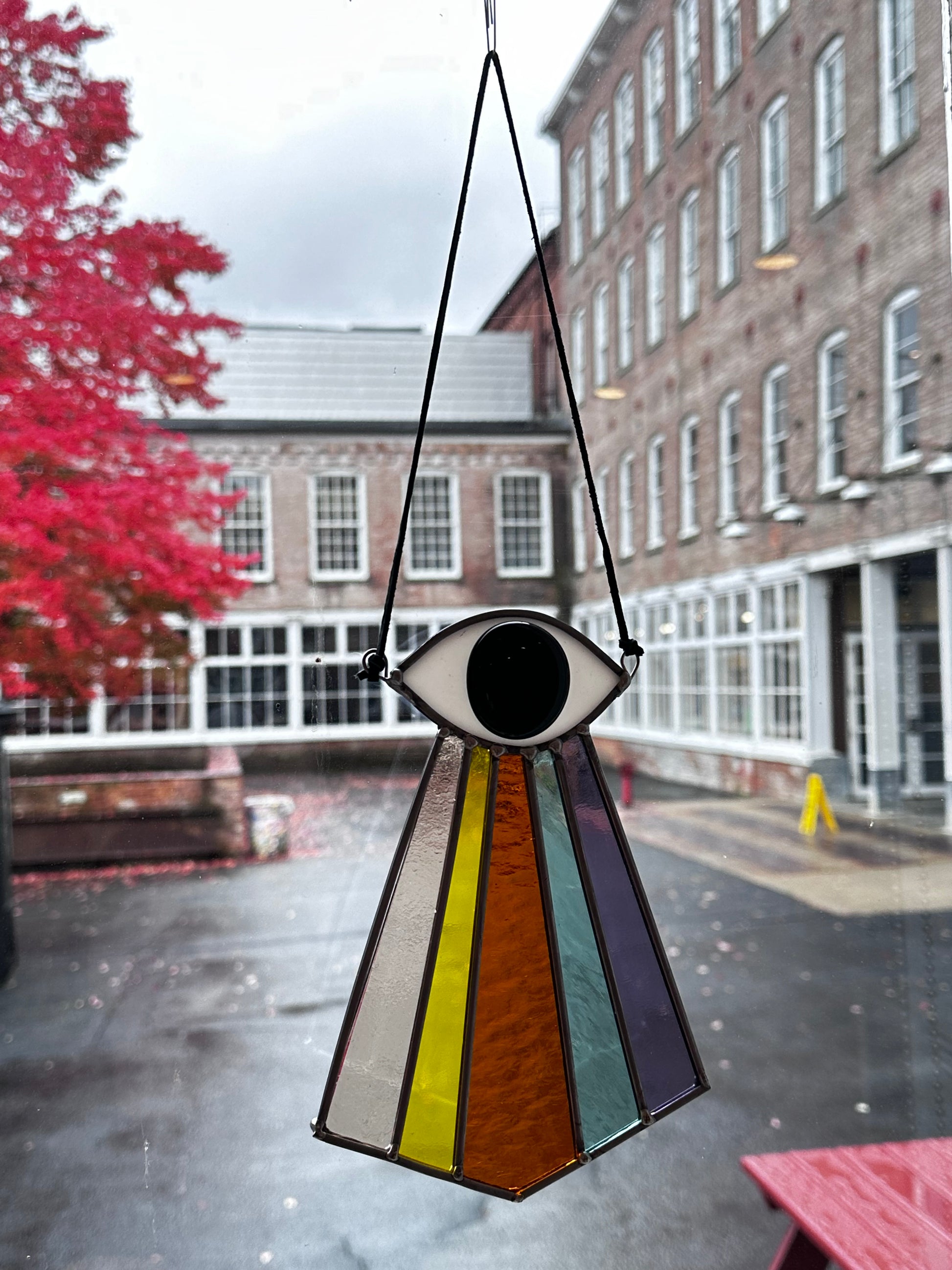 Erin Coovert is a Southern California artist creating hand cut glass rainbows for your windows under the moniker Moontan Stained Glass since 2014. Colors may vary.